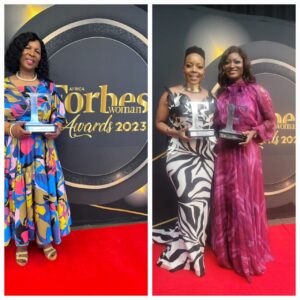 The prestigious FORBES WOMAN AFRICA AWARDS 2023 winners of the Forbes Woman Africa Businesswoman Award Nonkululeko Gobodo, Woman Africa Entertainer Award Nomcebo Zikode,Forbes Woman Africa Technology and Innovation Award Funmi Adewara#FWAA2023